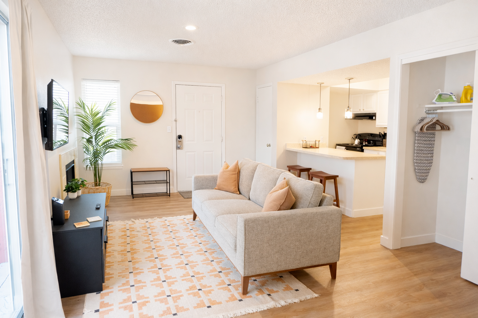 Comfortable living area featuring a Smart TV for effortless streaming and entertainment